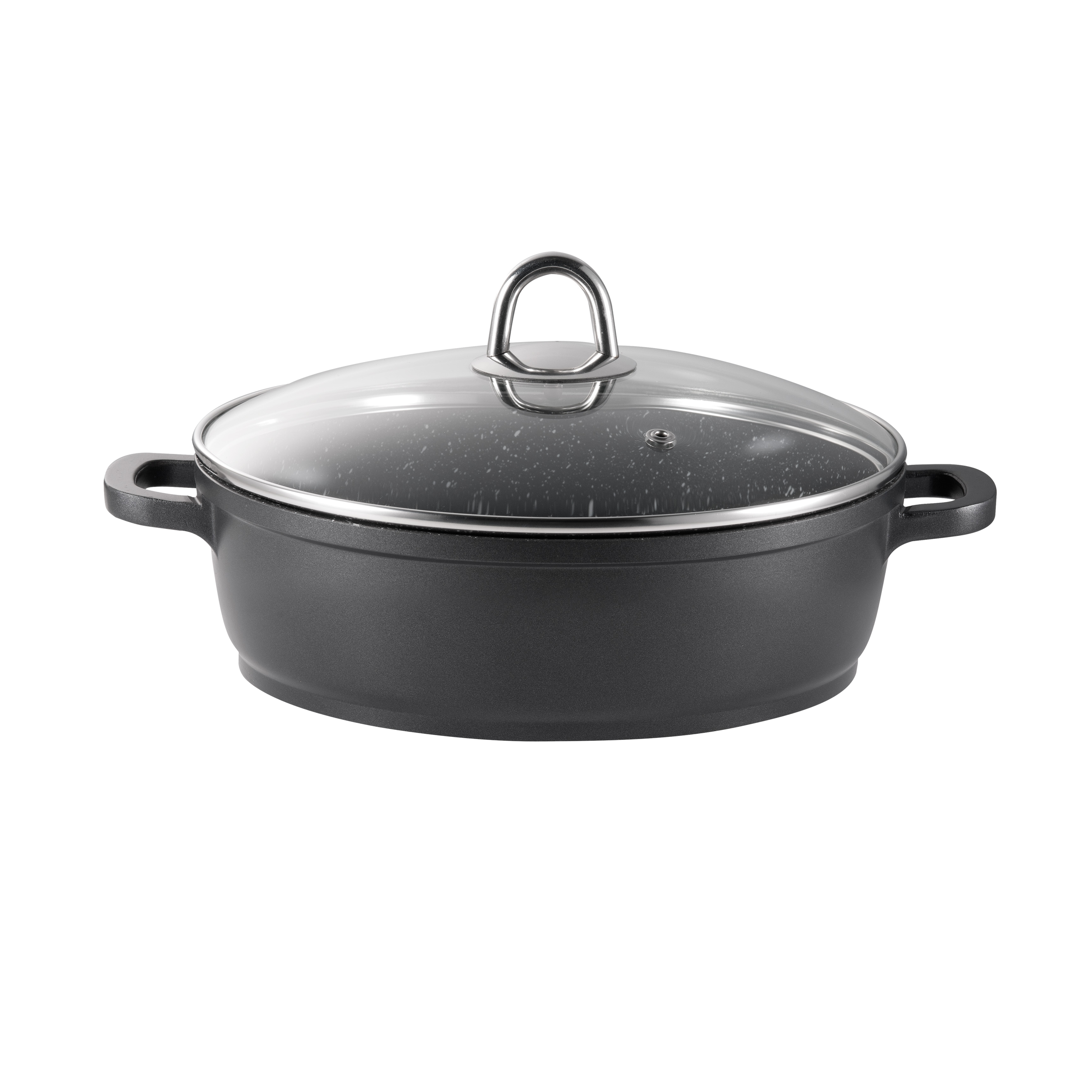 The perfect all-rounder pan to handle all your cooking needs and desires, the Cuisine::pro® Granite® Saute Pan with Lid is a must have for any home chef. Made with a hard-wearing exterior coat and scratch resistant Granite® non-stick interior, the Cuisine::pro® Granite® Saute Pan is ideal for cooking everything from meats, vegetables, pasta, stews, curries and more with minimal oils and fats for a healthier approach to food. The Heat Flex bonded induction plate makes the Granite® Saute Pan suitable for use on all cooktops, while the tempered glass lid with steam release vent makes monitoring your cooking easy and safe. Crafted with large ergonomic handles and knobs, the Cuisine::pro® Granite® Saute Pan is easy and comfortable to grip onto even when wearing oven mitts and gloves. Naturally PFOA free, the Granite® Saute Pan ensures every meal you cook is environmentally friendly and free from harmful chemicals. Dishwasher safe for quick and efficient cleaning, the Cuisine::pro® Granite® Saute Pan will become your go-to cookware piece for all your future meals and creations.
