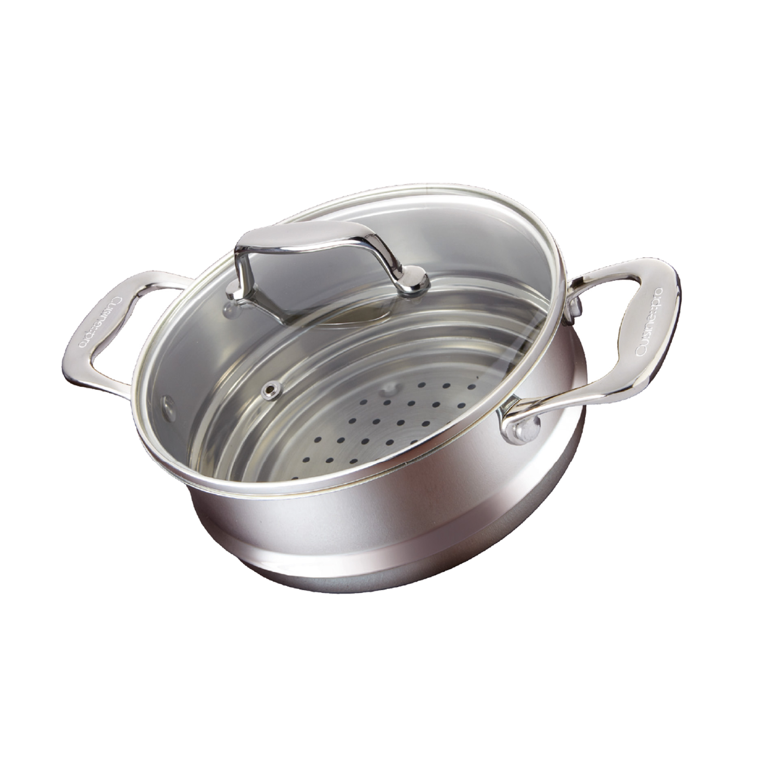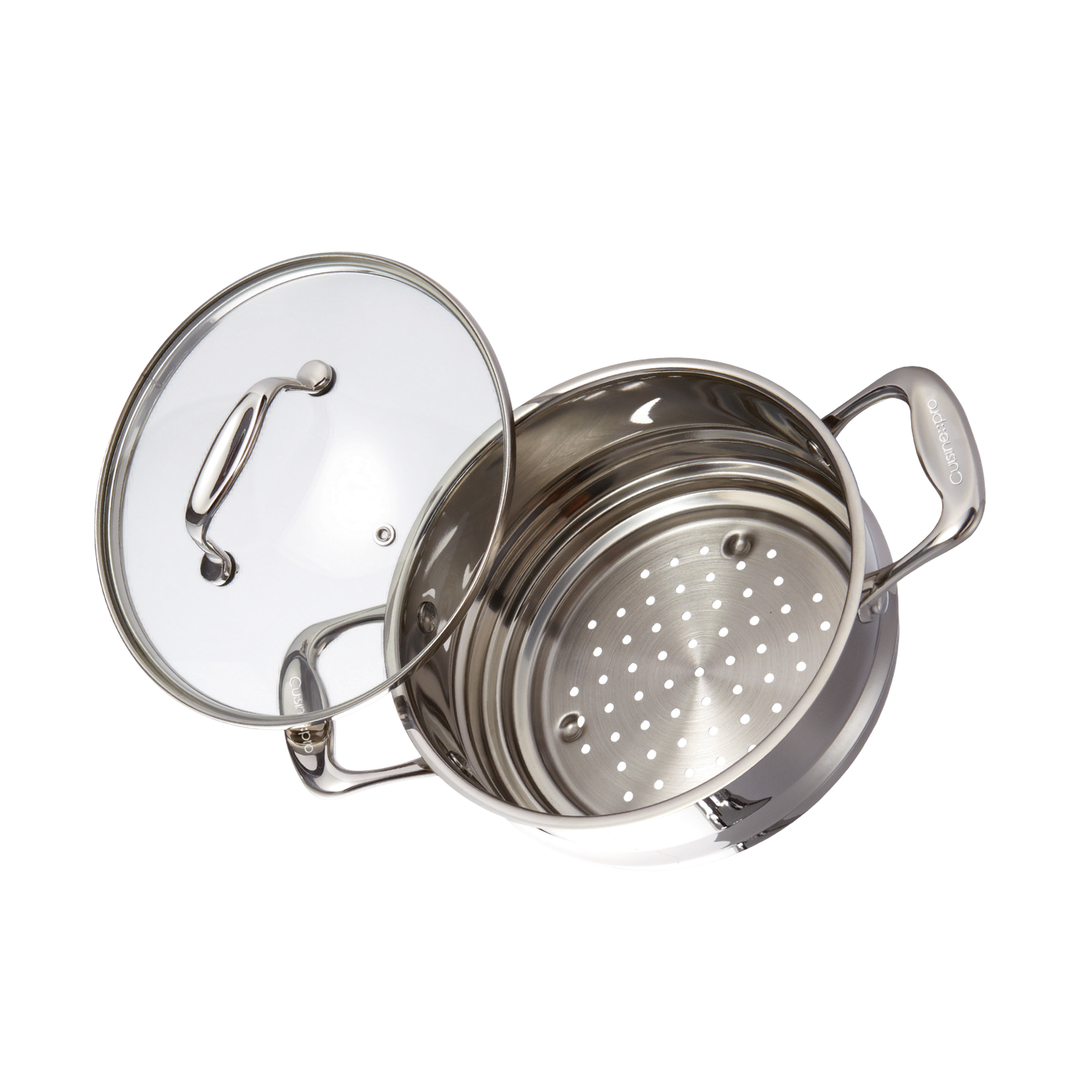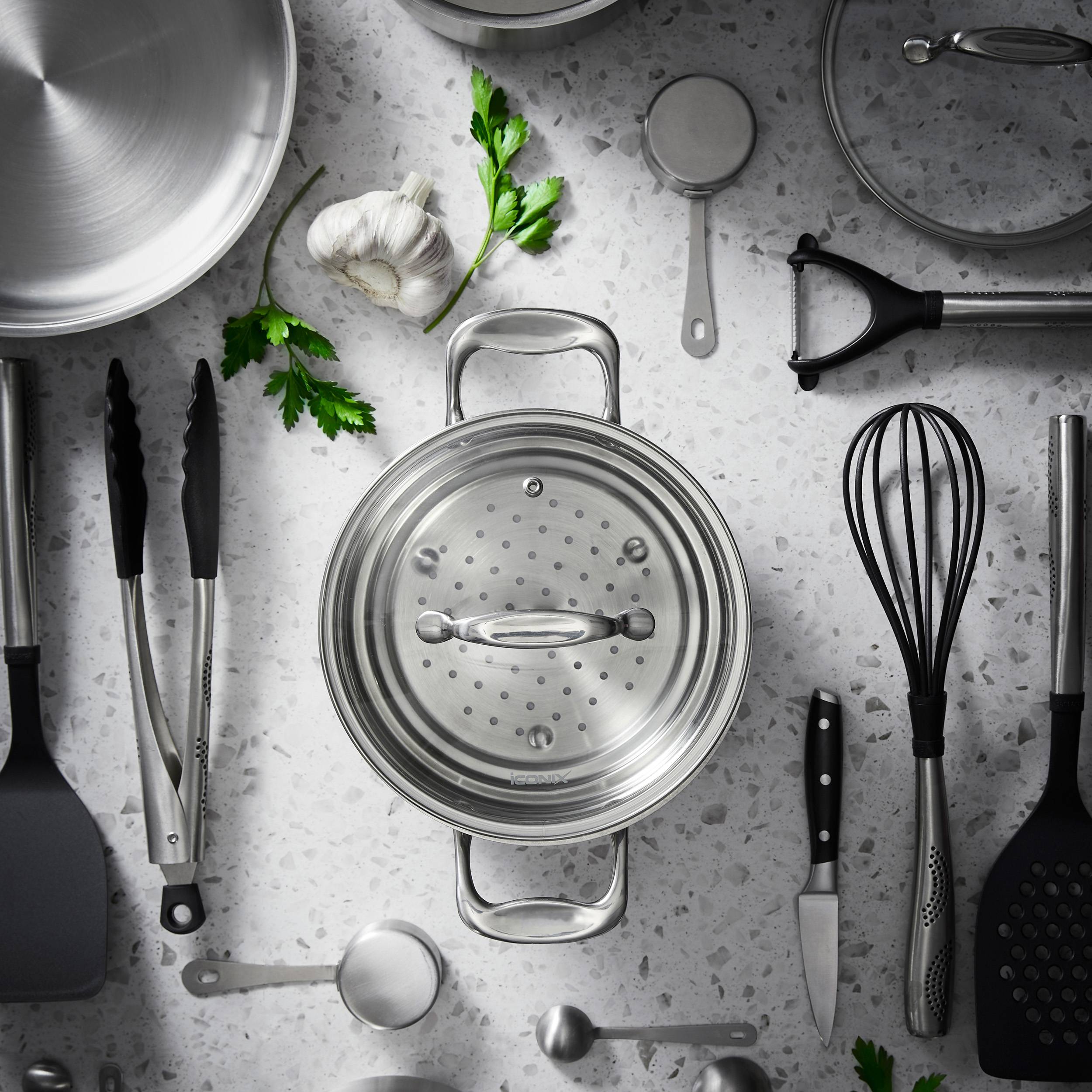 Enhance your kitchen with superior quality Cookware using the Cuisine::pro® iconiX® Universal Steamer Insert with Lid. Made from the highest grade 18/10 stainless steel and with a stainless steel interior that won't react with acidic or alkaline ingredients, the Cuisine::pro® iconiX® steamer is a must-have Cookware piece for any kitchen. With an easy clean mirror finish interior and stay cool cast stainless steel riveted handles, the Cuisine::pro® iconiX® steamer fits 16, 18 and 20cm Saucepans and has an easy-view, tempered glass lid to help make cooking like a professional part of your everyday life. The Cuisine::pro® iconiX® range is suitable for all cook tops including induction and is dishwasher safe for your convenience.