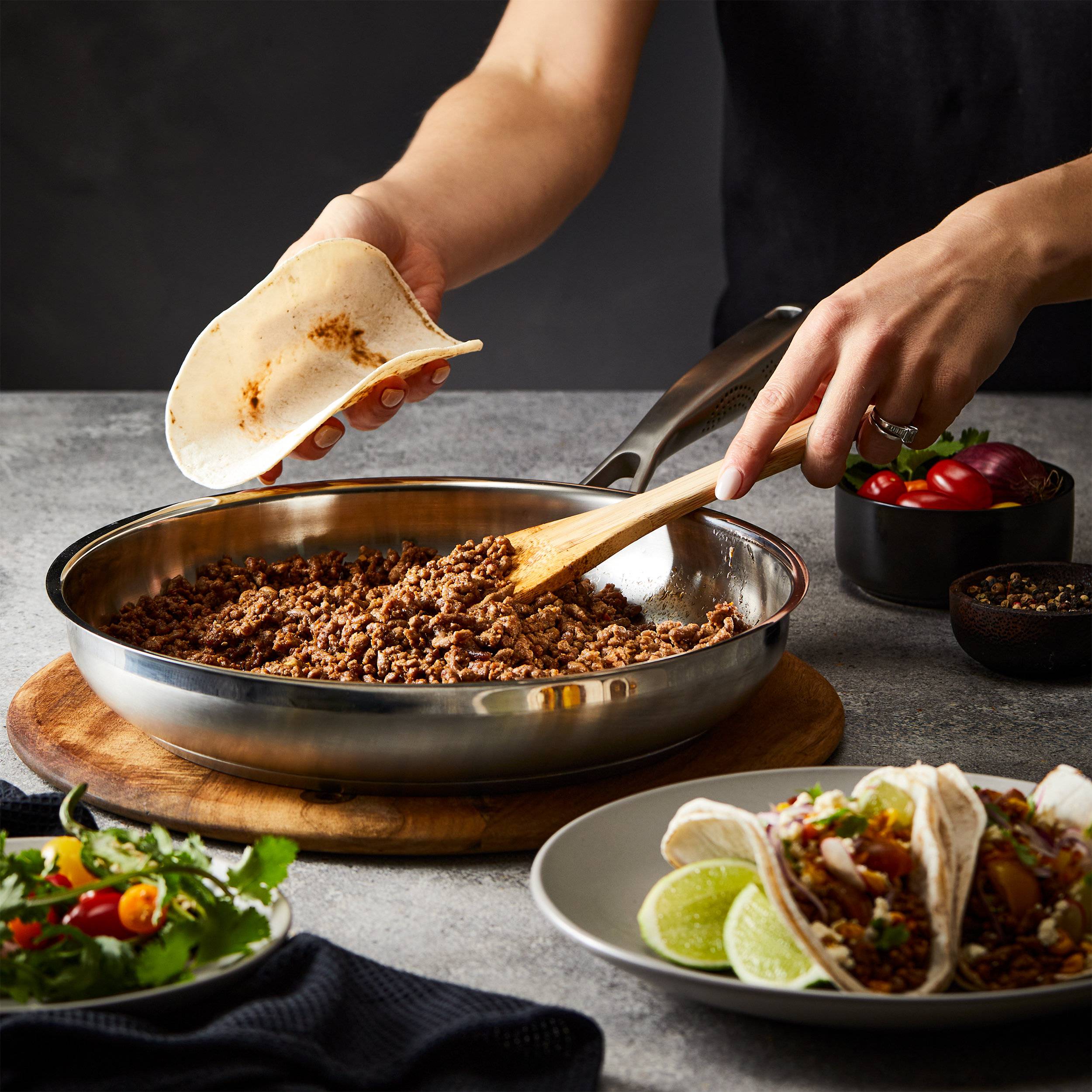 - Ergonomic MicroDot® Technology: Stay-cool, riveted handles enhance comfort, precision, and control while cooking.