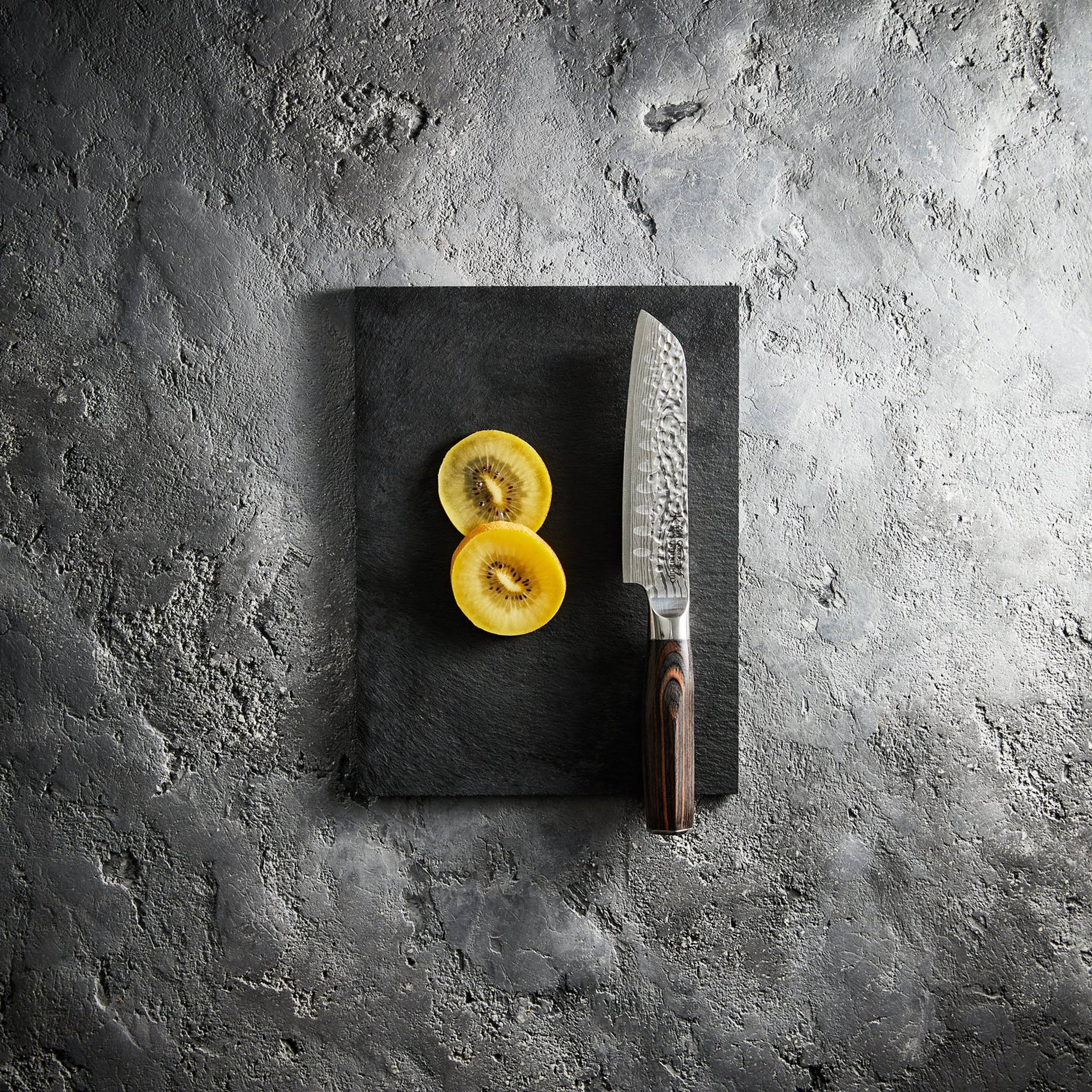 - The Cuisine::pro® Damashiro® Emperor Santoku 14cm/5.5" has a low tip, broad blade perfect for slicing, dicing and mincing. The recesses situated above the blade edge helps to release thin slices and sticky food after slicing.