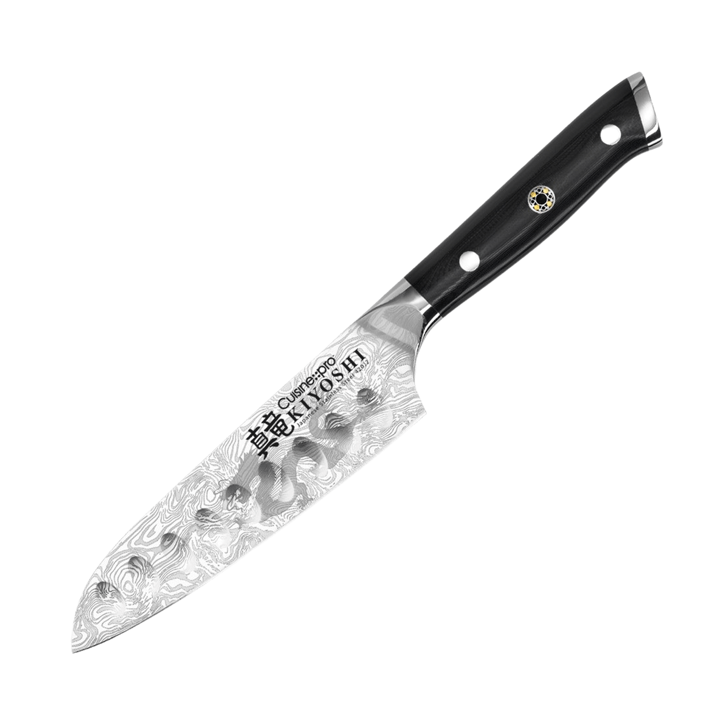 - The Cuisine::pro® KIYOSHI™ Try Me Santoku Knife 12.5cm/5" has a low tip, broad blade perfect for slicing, dicing and mincing. The recesses situated above the blade edge helps to release thin slices and sticky food after slicing.