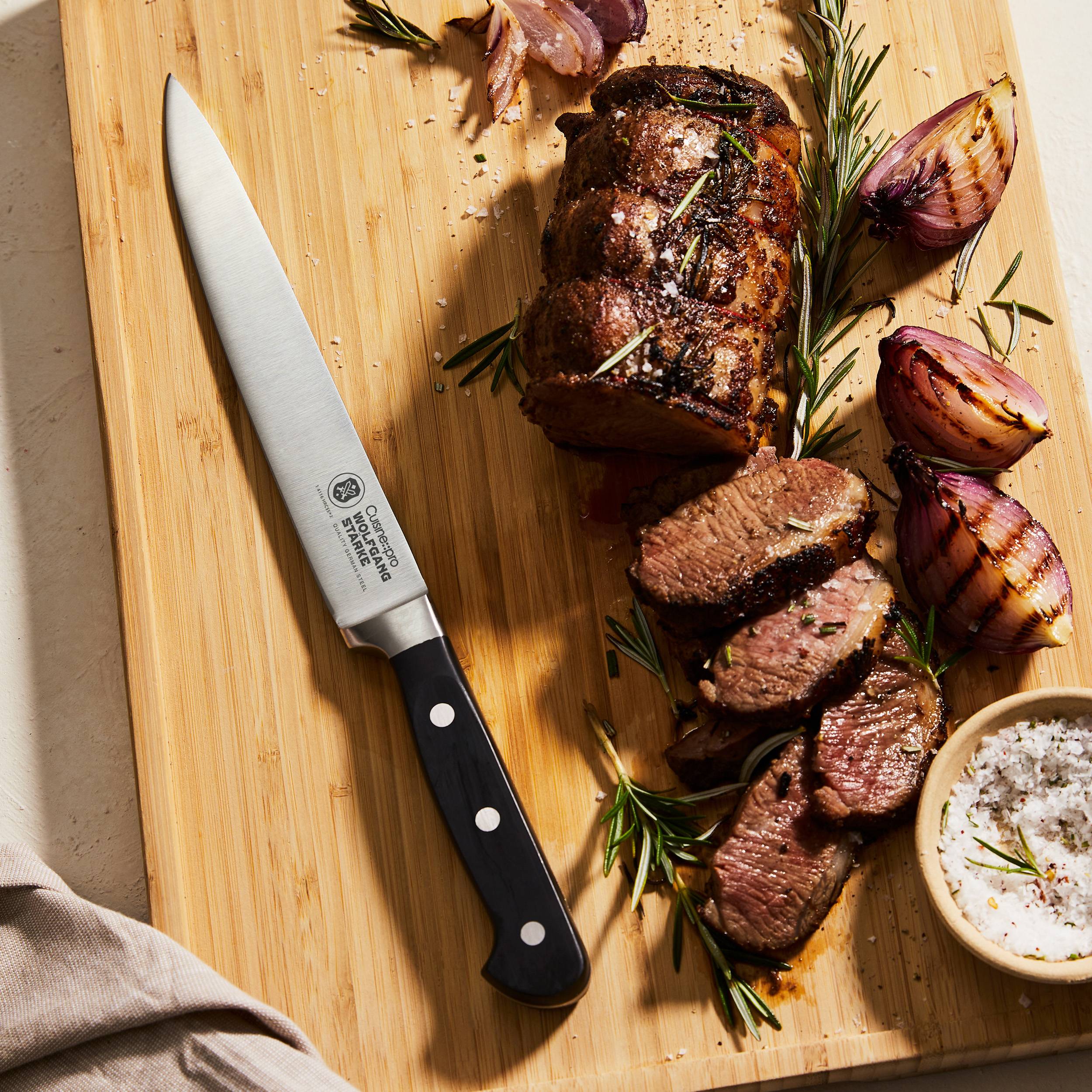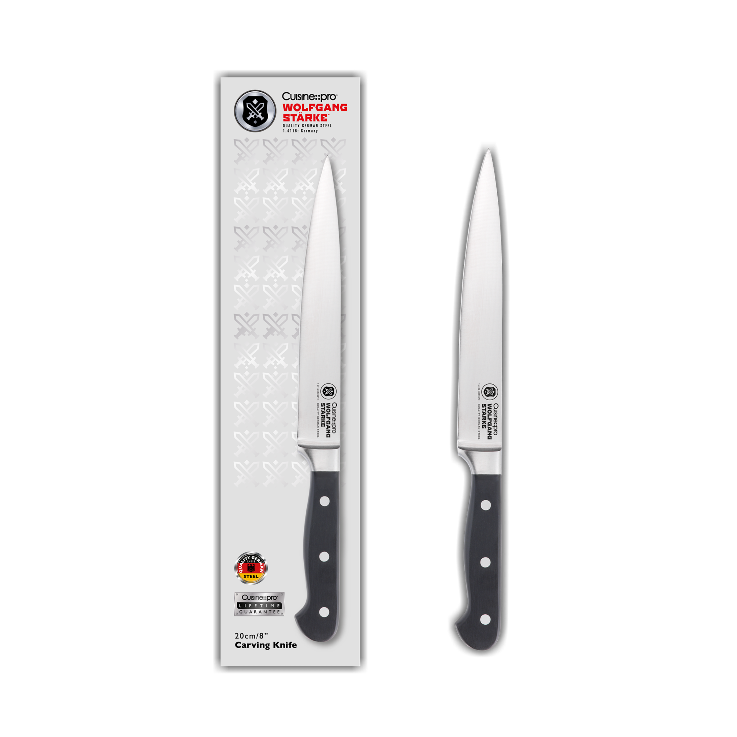 - The Cuisine::pro® Wolfgang Starke™ Stainless Steel Carving Knife 20cm/8" is great for carving thick slices of meats, fruit and vegetables. Narrower than a chef’s knife, with a curved blade profile, helps to follow contours and guide meat away from the bone. This knife allows for more precise cuts.