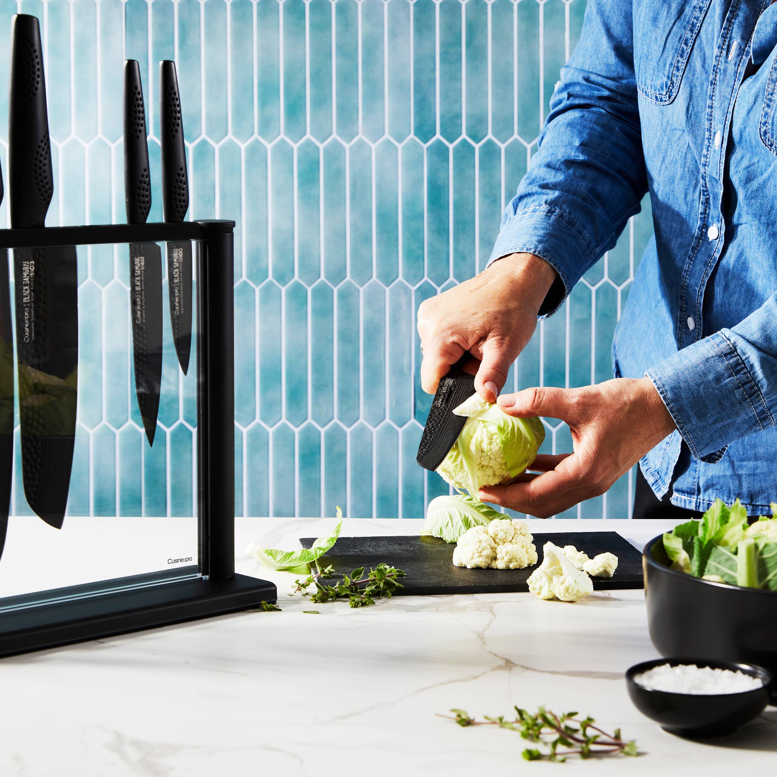 - Cuisine::pro® iD3® Black Samurai™ knives are razor-thin and light weight making for an extremely fast, agile chopping and slicing experience. They are perfect for precision cuts and mincing. Every curve and line has been designed for precise performance without bruising or tearing delicate foods.